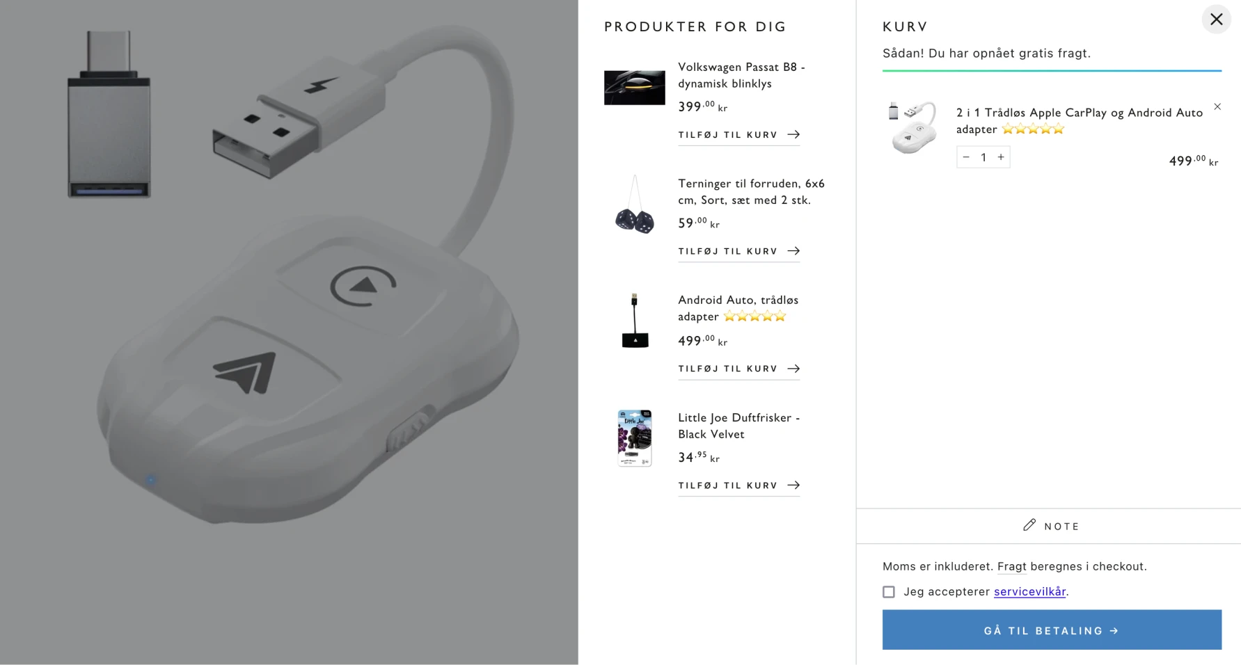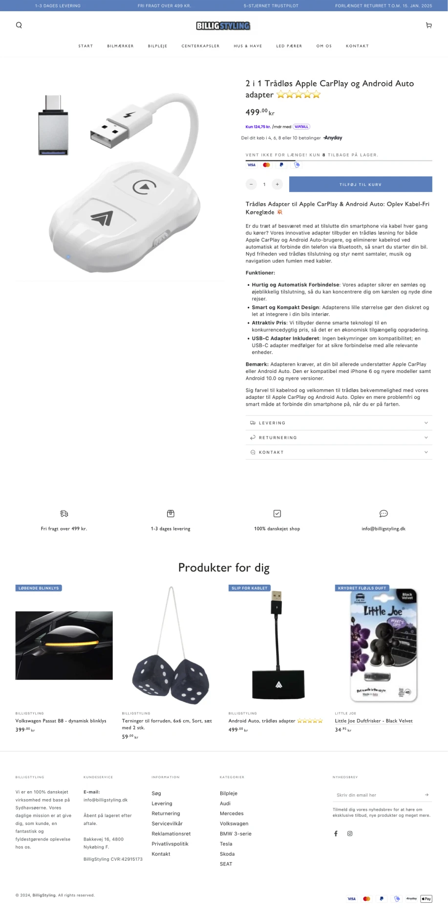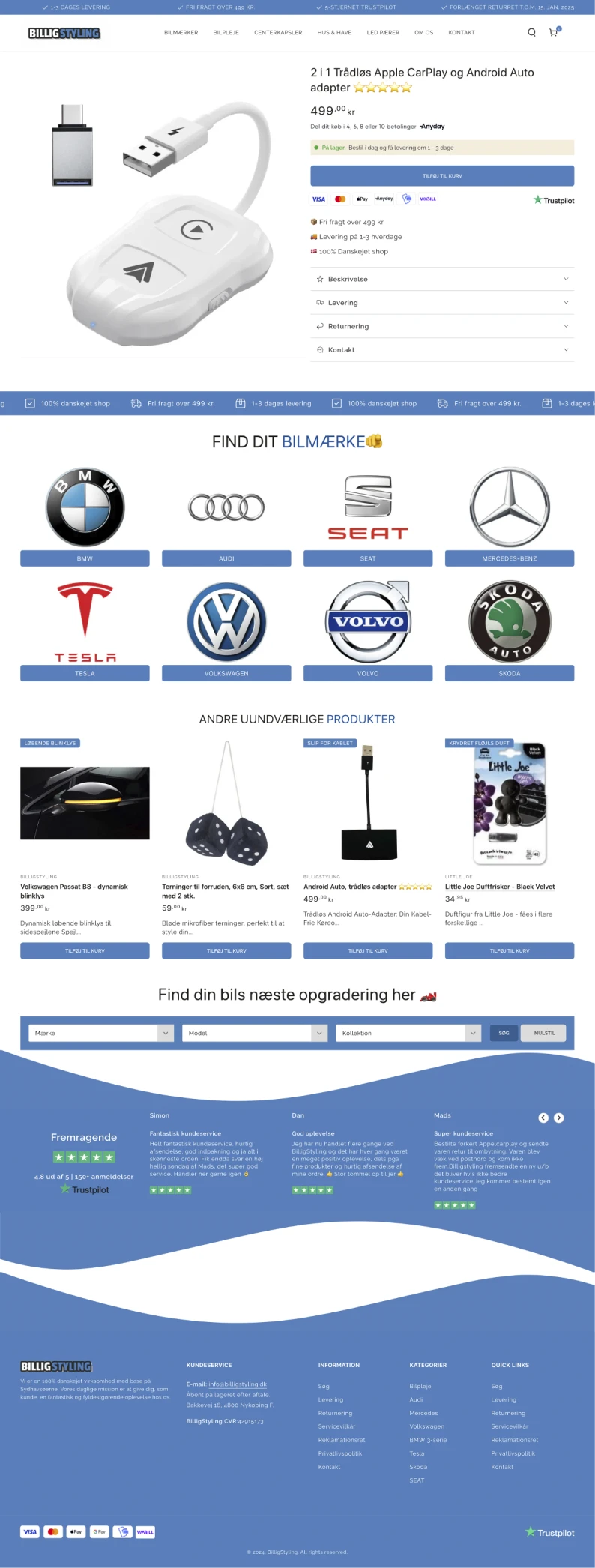 En shop med produktet i centrum frem for tekst og støj. Let og nem navigation på både computer og mobil, så kunden finder vej uden friktion. Et tydeligt søgefelt, der hjælper kunden på vej. Og flere bundle-løsninger, der afdækker flere behov og hæver AOV med hver ordre.