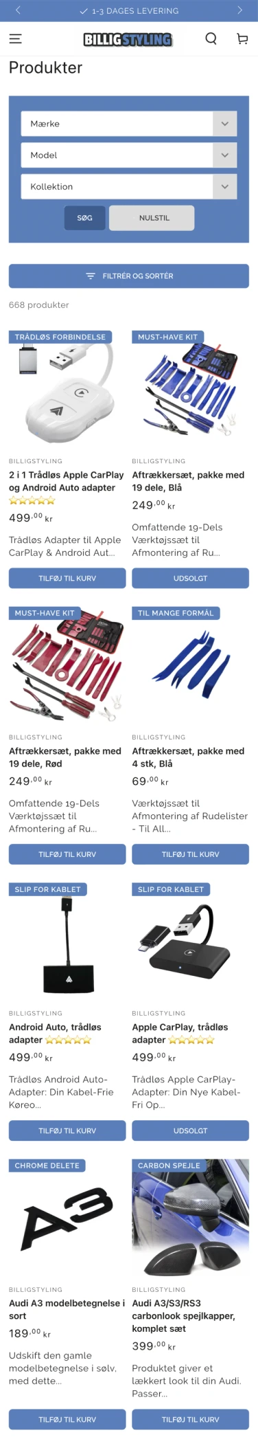 • Produkterne i centrum med minimal tekst og støj