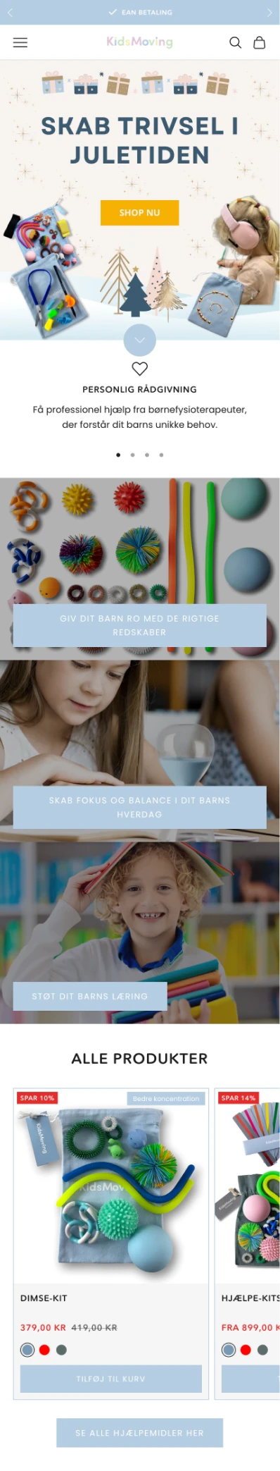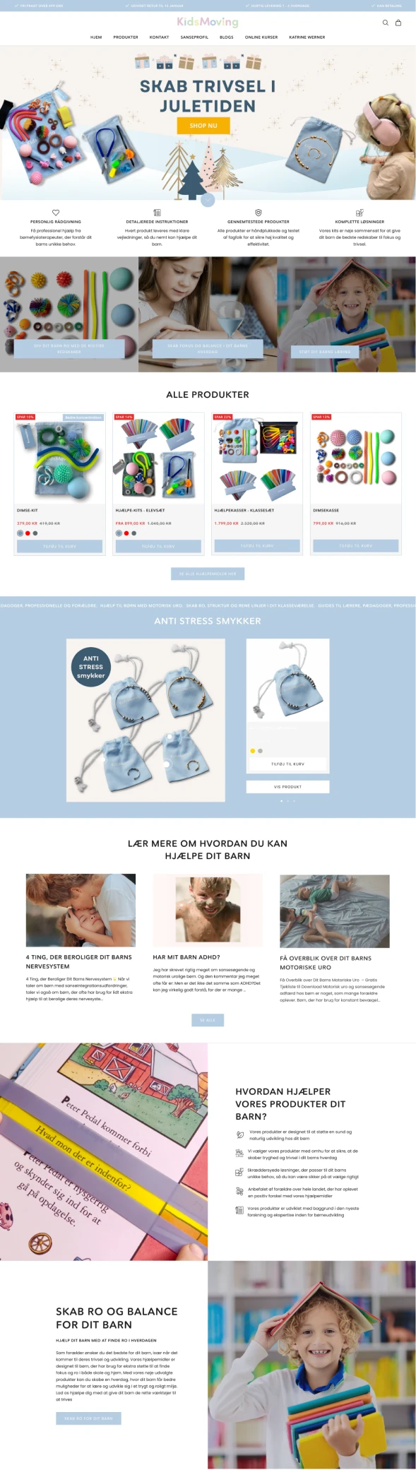 En shop bygget op omkring Katrine som ekspertkilde og afsender. Øget troværdighed gennem råd, blog og videoer, der positionerer hende som den autoritet, forældre kan stole på. Samtidig et skarpt fokus på brugervenlighed på både computer og mobil, så kunderejsen er friktionsfri uanset enhed.
